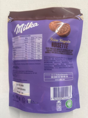 | Milka feine Kugeln Noisette | |