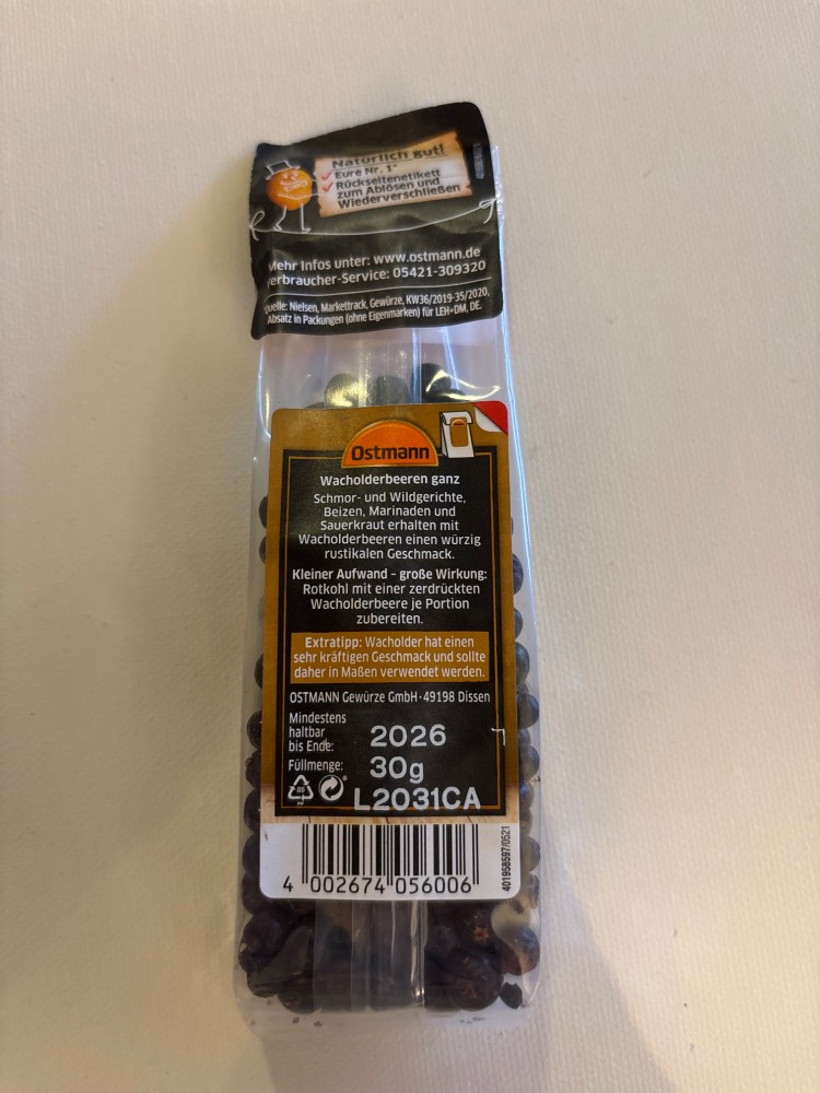 | Ostmann Nachfüllbeutel Wacholderbeeren ganz | |